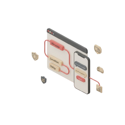 Bangun alur dalam hitungan menit. Uji bersama tim dan lihat dampaknya ke kepuasan pelanggan serta penjualan.